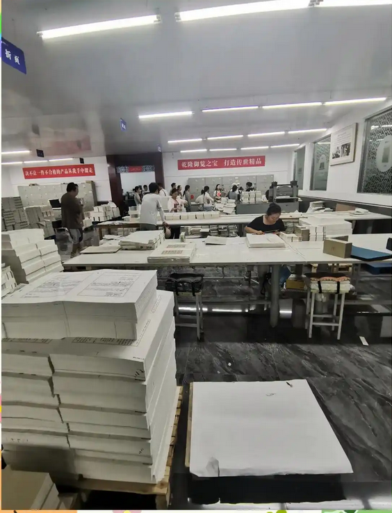 在深入了解三希堂从纸张到书籍的全流程后,我们进一步踏入了制作车间。这里,古老的造纸技艺与现代印刷工艺交织,为我们展现了一场视觉与心灵的盛宴。