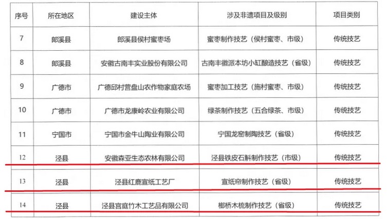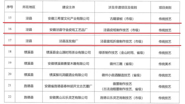 三希堂讯 日前,宣城市文化和旅游局、宣城市人力资源和社会保障局、宣城市农业农村局联合发布《关于公布首批市级非遗工坊名单的通知》,安徽三希堂文化产业有限公司等24家企业被认定为宣城市首批“市级非遗工坊”。