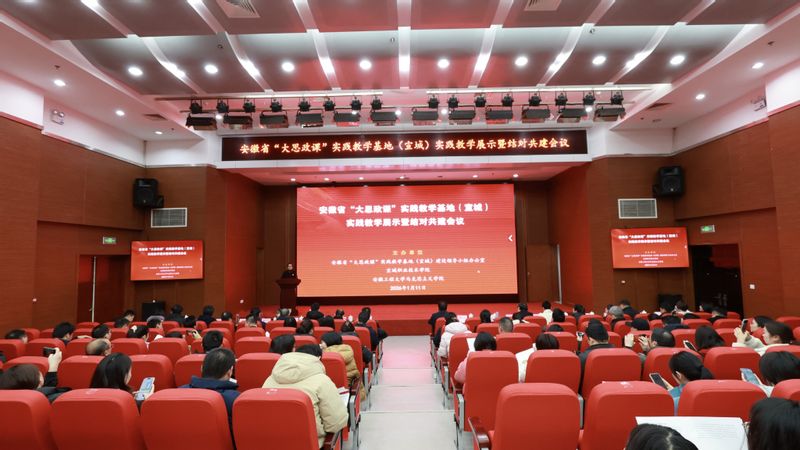 三希堂讯(据安工程马院官网) 2026年1月11日,安徽省“大思政课”实践教学基地(宣城)实践教学展示暨结对共建会议在宣城召开。安徽省委教育工委思政处处长、一级调研员王后林,宣城职业技术学院党委副书记、院长庞波,安徽工程大学党委副书记郑健,宣城市教体局党委委员、副局长李旻出席会议。安徽省高职高专院校重点马院负责人、基地第一批20个教学点负责人、20个实践教学课程设计项目负责人、宣城职业技术学院教师代表、安徽工程大学马克思主义学院领导班子及师生代表齐聚一堂,共话思政育人新路径。
